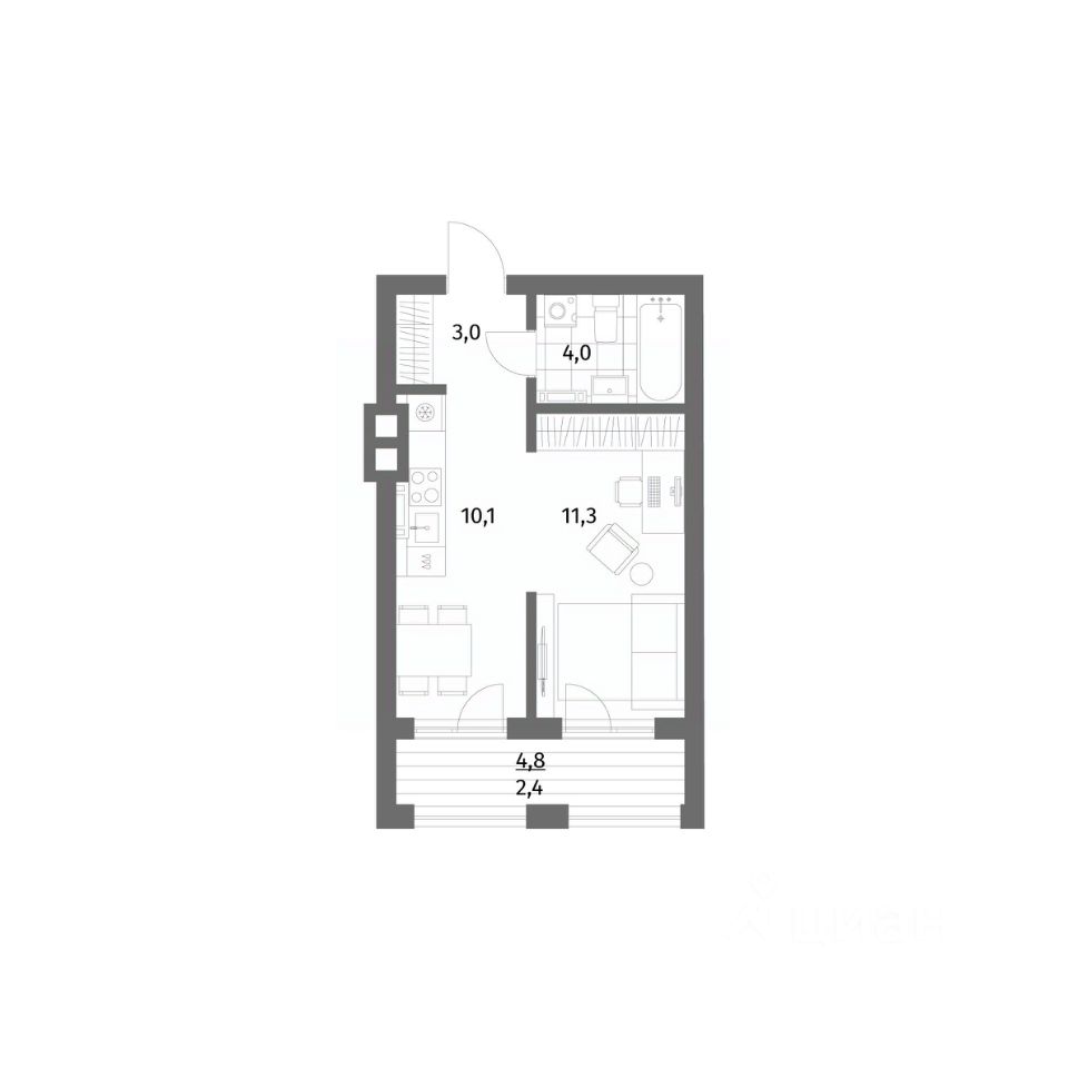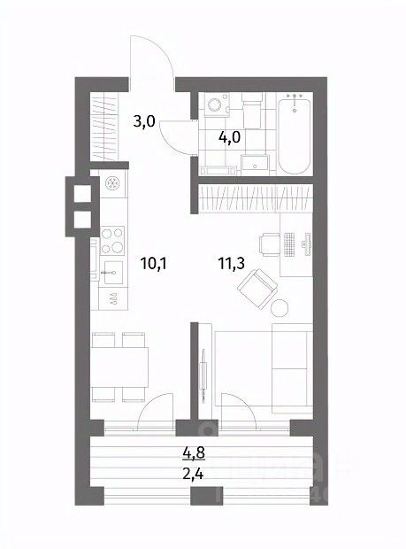 Жилая площадь11,3 м²