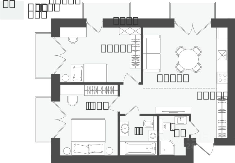 Продаётся 2-комнатная квартира в строящемся доме (Дом 1), срок сдачи: III-кв. 2026, общей площадью 60.55 кв.м., на 5 этаже.