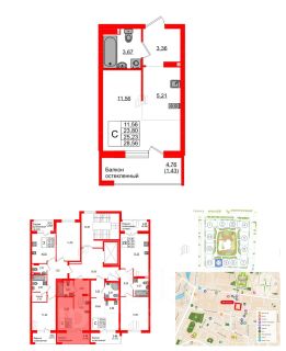 Квартира-студия в ЖК Консул | 28,56 м² | 9 этаж