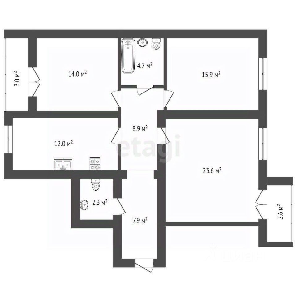 2 лоджии, 1 балкон