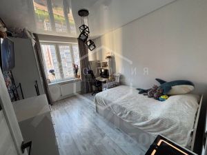 Функциональное помещение, которое легко зонируется: можно организовать рабочее место, зону отдыха с диваном и ТВ или уютную спальню. Комната светлая, с приятным естественным освещением.
