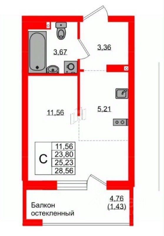 Продается студия площадью 28,59 кв.м на 9 этаже нового жилого комплекса комфорт-класса в районе Верхнего озера, сдача которого запланирована на 2026 год.