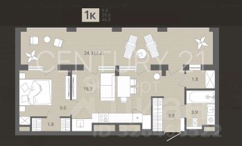 - Уютная спальня 9 м² с отдельной гардеробной 1,8 м² — всё под рукой, без лишних вещей.