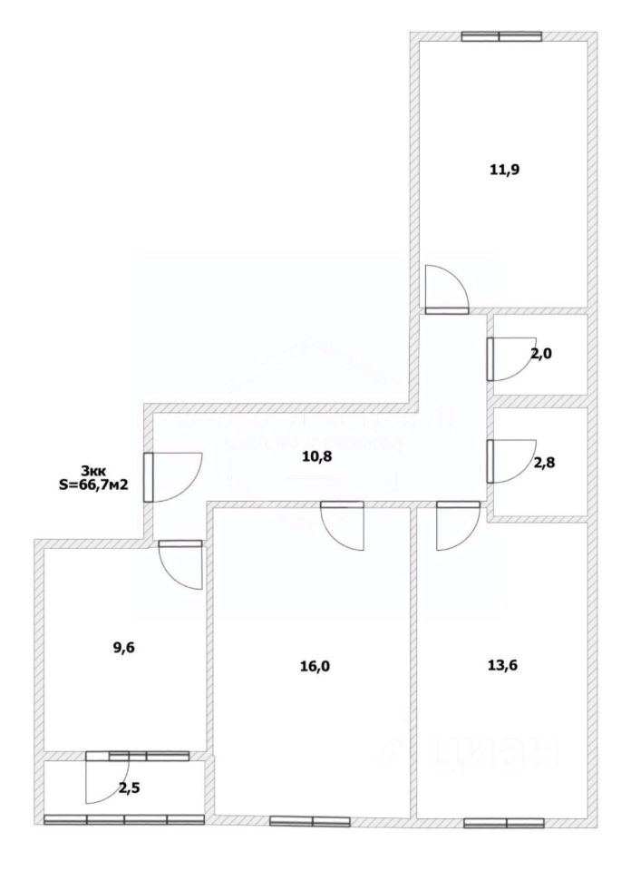Общая площадь квартиры — 66,7 кв. м.