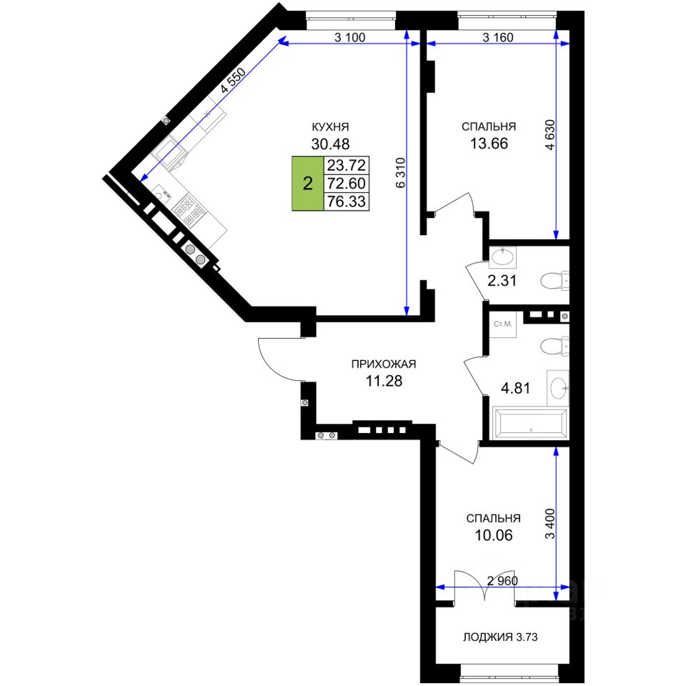76,33 м²