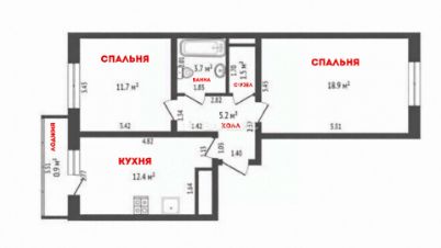 - кухня 12.4 м² с выходом на лоджию 1 м²