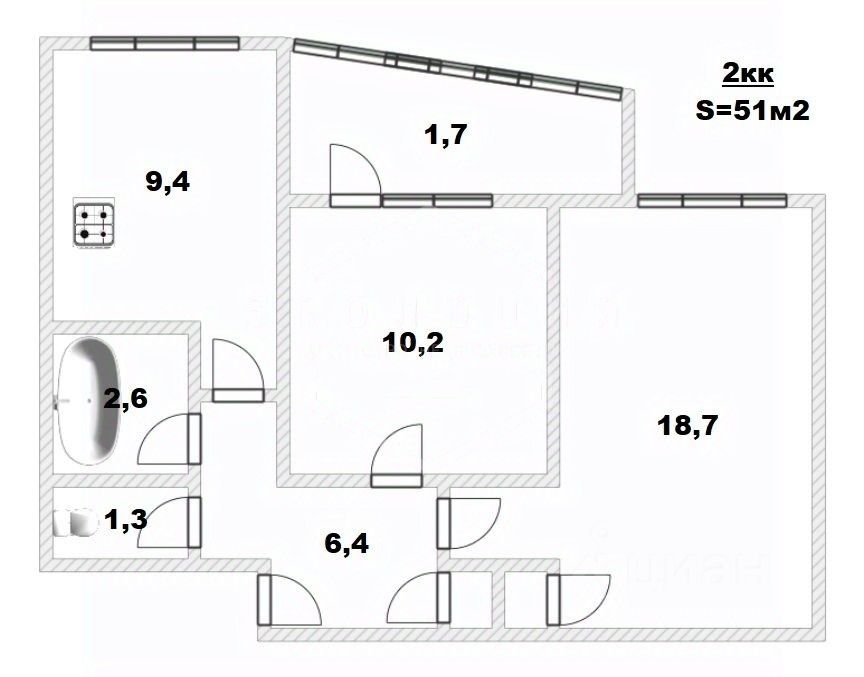 - две изолированные комнаты (18.7+10.2);