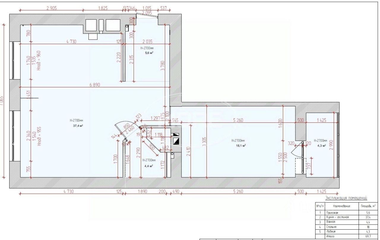 Квартира общей площадью 64 м2 с просторной кухней-гостиной 32 м2, изолированной спальней 18 м2 с выходом на застекленную лоджию 4 м2, совмещенный санузел 5 м2.