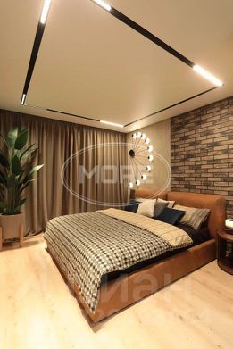 Кровать с регулировкой уровня и вместительной системой хранения. Мебель в спальне сделана из натурального шпона.
