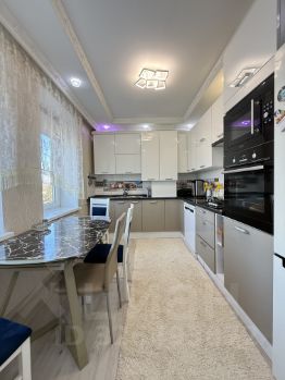 Просторная кухня площадью 10 мг оборудована всем необходимым, включая газовую плиту и холодильник, посудомойка, встроенная микроволновка и духовка.