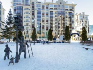 Три современные детские площадки по возрасту, футбольное поле, баскетбольная и волейбольная площадка, теннисный корт, уличные тренажеры, отдельно оборудованные зоны для выгула собак.