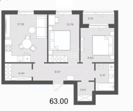 Планировка: — Просторная кухня-гостиная 17,2 м² — идеальное пространство для семейных ужинов и приёма гостей. — Две изолированные комнаты — комфорт и приватность для всех членов семьи.