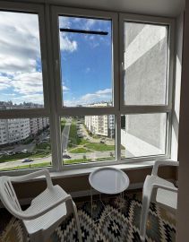 Кухня 13.2м с выходом на застеклённую лоджию 2.0 м с панорамным видом (можно любоваться шикарными закатами) оснащена кухонным гарнитуром с фурнитурой Blum, трехступенчатый фильтр для воды Аквафор, с холодильником, плитой, духовым шкафом, вытяжкой, посудомоечной машиной и микроволновой печью.
