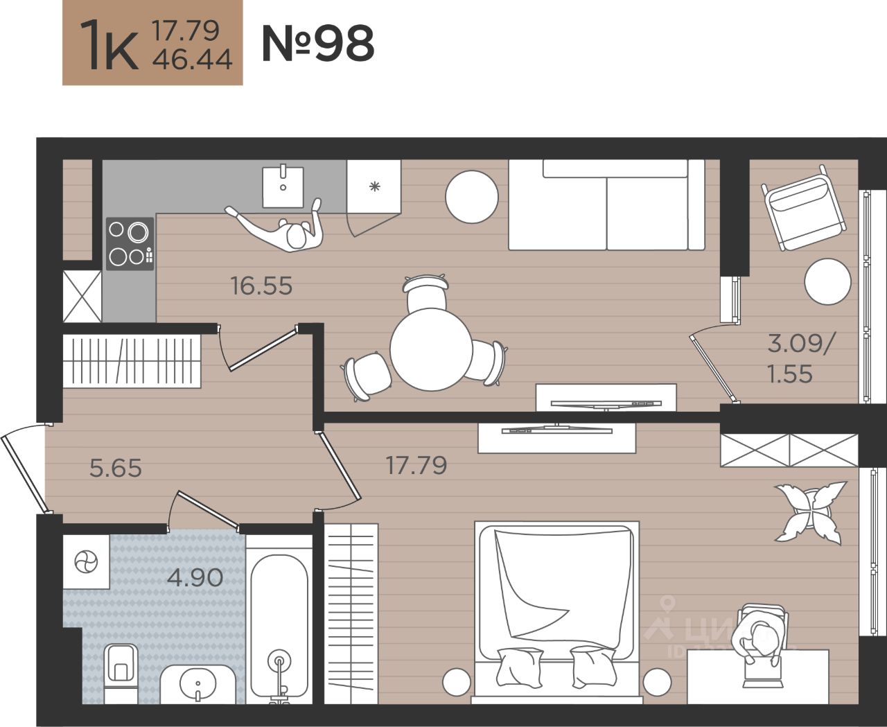 Продается комфортабельная 1 комнатная квартира 98 на Советском проспекте, 50 в ЖК "МОЙ ГОРОД"