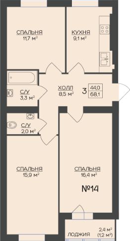 68,1 м²