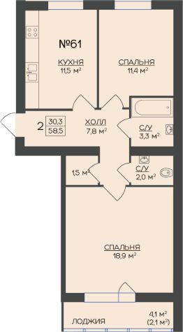 58,5 м²