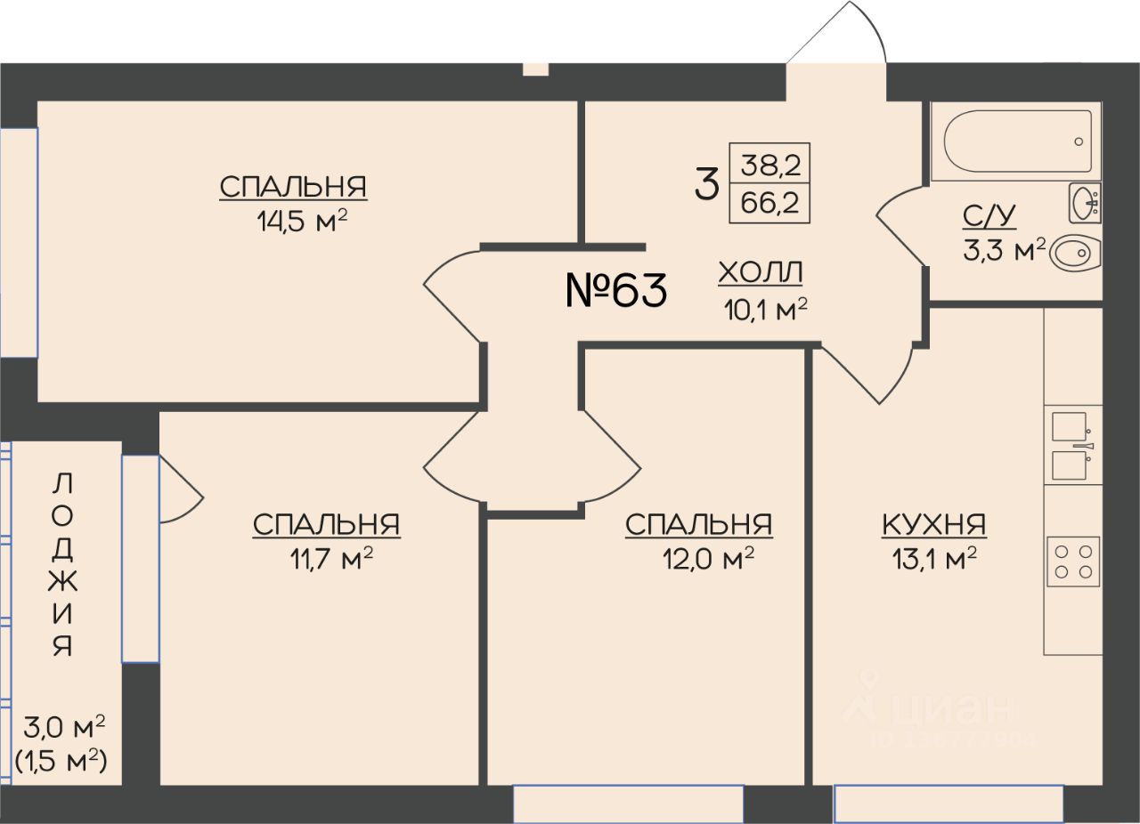 66,2 м²