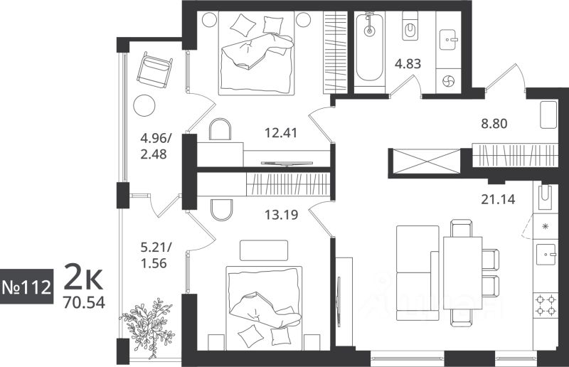 Продается 2-комн. квартира, 70,54 м²