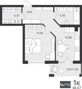 Общая площадь48,67 м²
