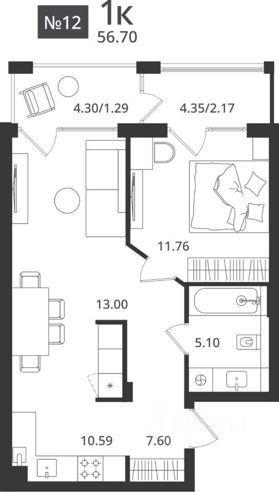 56,7 м²