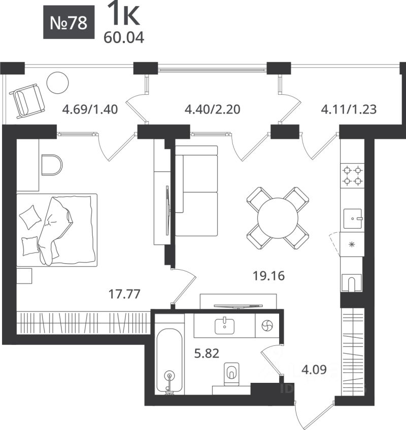 60,04 м²
