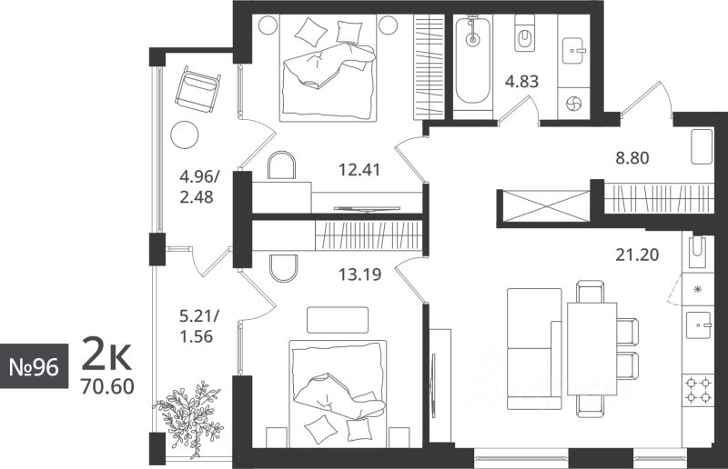 Продаётся 2-комнатная квартира в строящемся доме (Дом 1), срок сдачи: I-кв. 2026, общей площадью 70.6 кв.м., на 1 этаже. Новый жилой дом от Специализированного застройщика "Жилой комплекс на Новой" расположен по адресу: г. Светлогорск, ул. Новая.