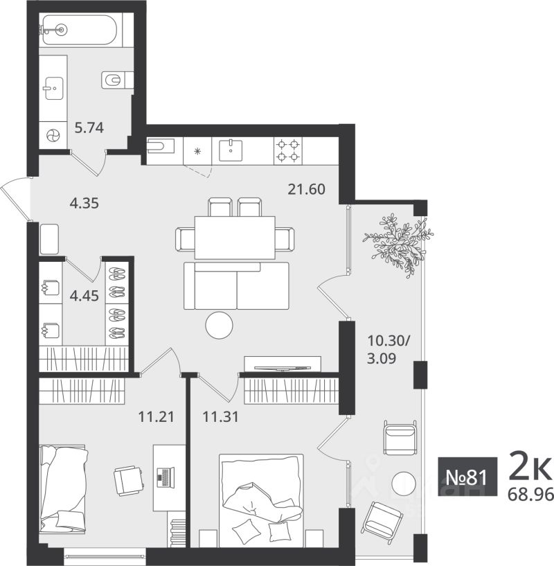 68,96 м²