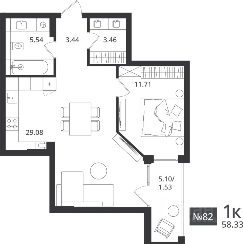 58,33 м²