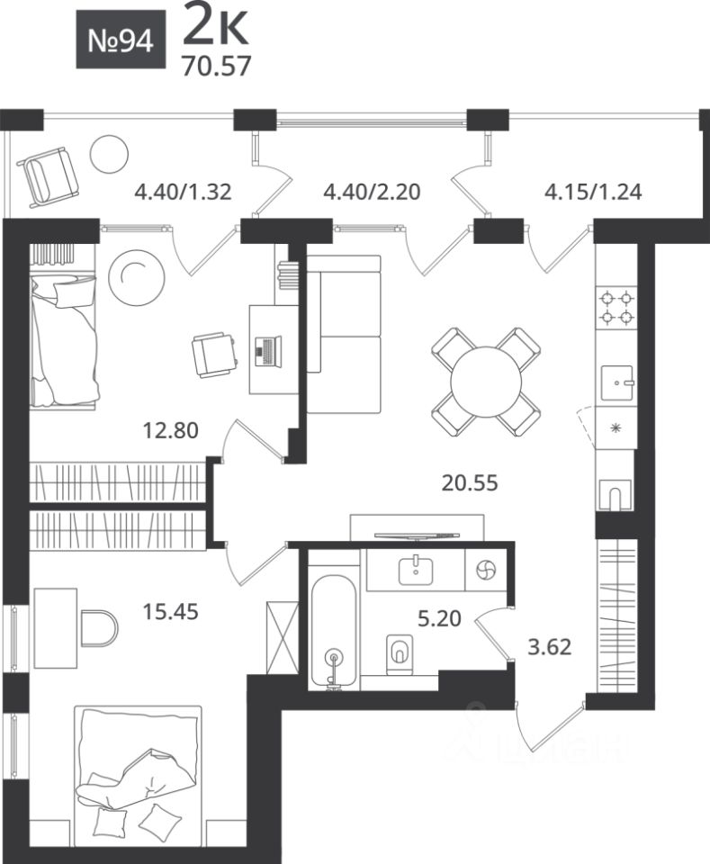 70,57 м²