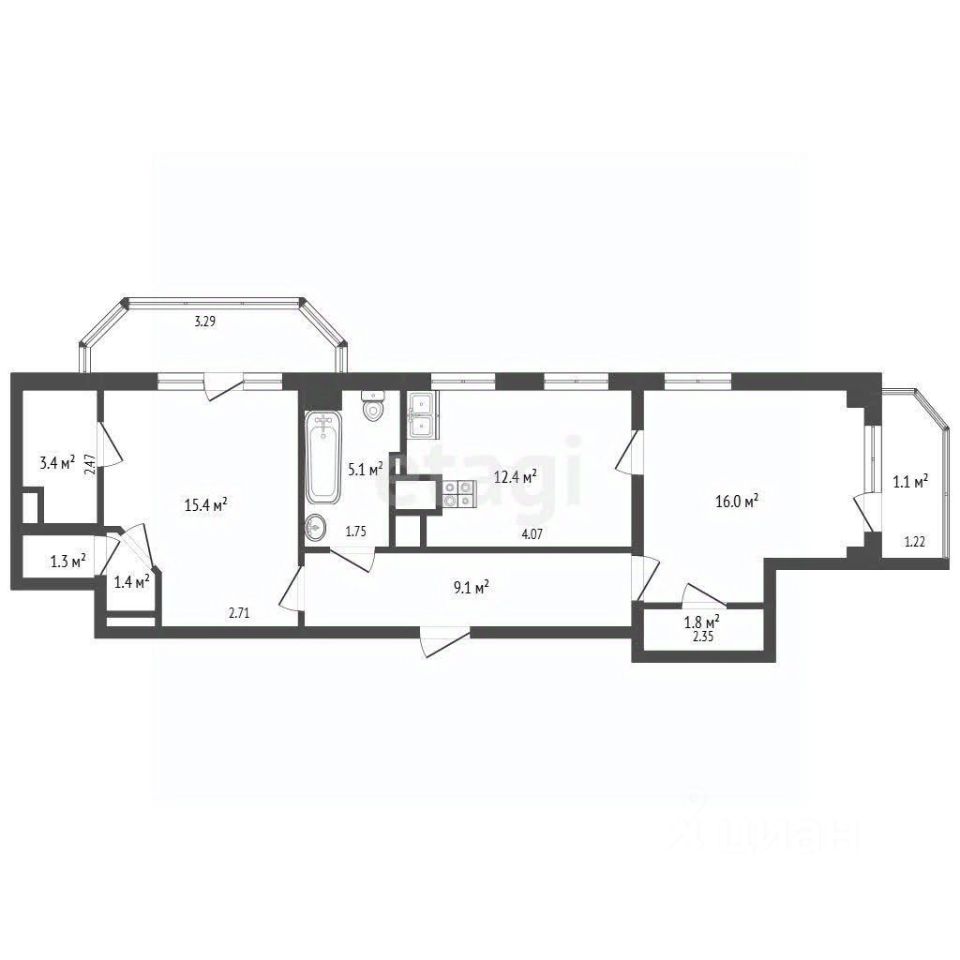 -Две застекленные лоджии с выходами из комнат - место где наслаждаешься прекрасными видами и красивыми закатами. Из мастер-спальни оборудована стильным компактным рабочим кабинетом и раскладным креслом, из второй комнаты - со шкафом для хранения хозинвентаря;