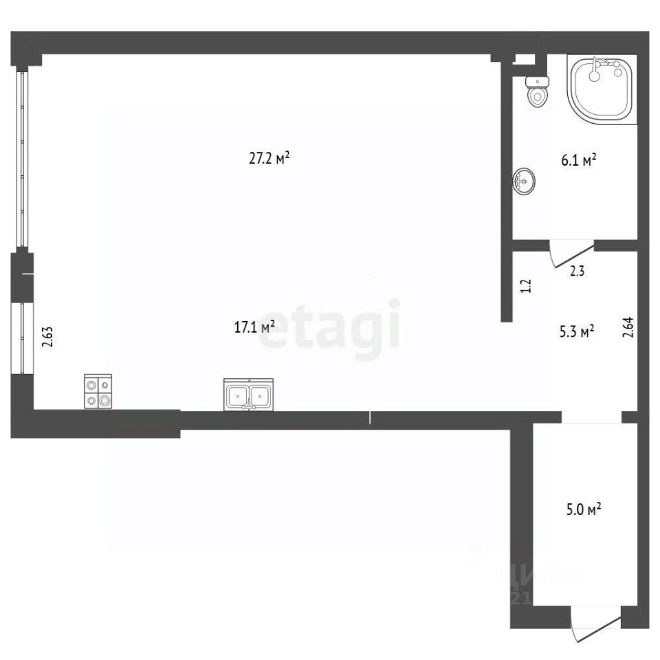 Квартира имеет общую площадь 61м2