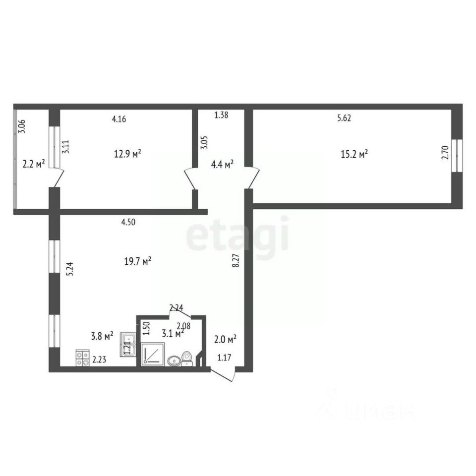 • Площадь квартиры: 61,1 м²