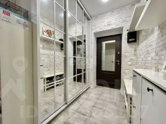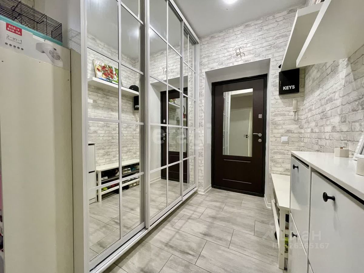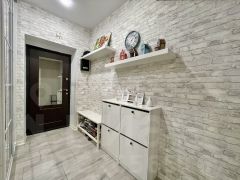 — Просторный коридор: Оформлен кирпичной кладкой "кабанчик", имеется вместительный зеркальный шкаф-купе