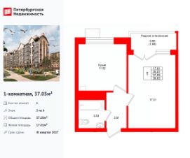 Удобная, классическая планировка, кухня 11.02 м², вместительная прихожая 3.51 м². Общая площадь квартиры - 37.05 м², жилая 17.01 м², высота потолка 3 м.