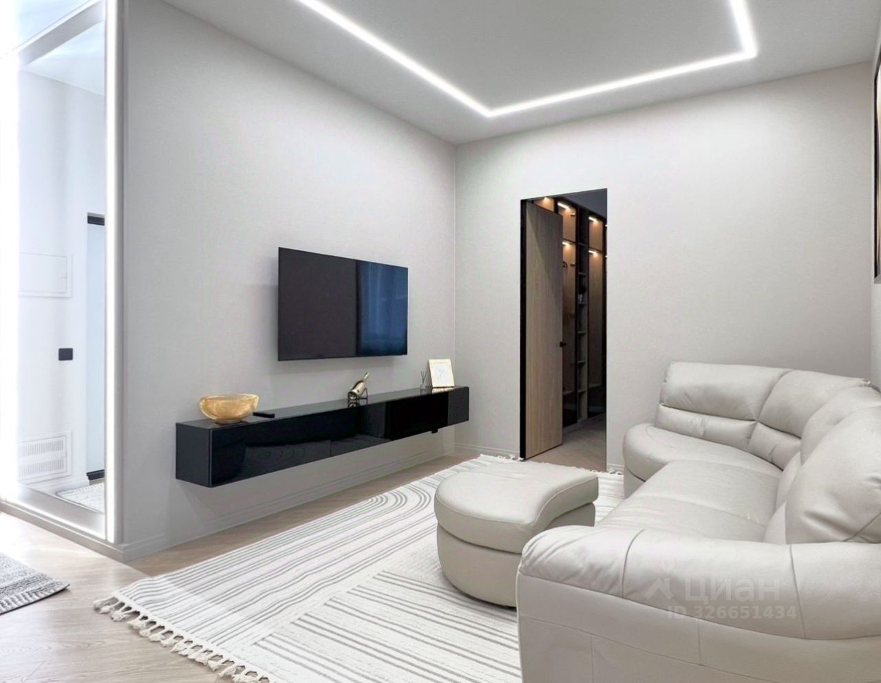 Квартира трехкомнатная. Большая кухня-гостиная с панорамными окнами + спальня и детская.