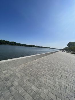 До сухоходного канала и набережной с прогулочными зонами и местами для отдыха, 10-15 минут пешком.