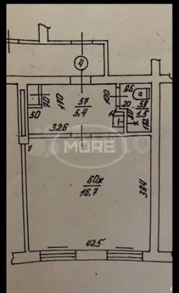 Комфортабельная планировка — просторная жилая комната, объединенная зона кухни и прихожей (5,4 м²), отдельный санузел и душевая (1,5 м²).