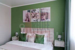 Интерьер выполнен в спокойных, благородных тонах: уютная спальня с акцентной стеной, продуманное освещение. Качественная мебель и текстиль создают ощущение комфорта и уюта с первых минут.