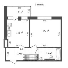 • кухня - 12.1 кв.м. с выходом на остеклённую лоджию - 4.4 кв.м.
