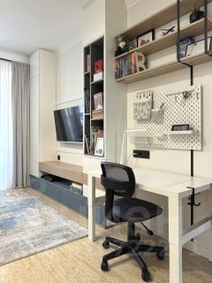 Детская: абсолютно новый ремонт по дизайн проекту с идеально ровными стенами, акцентами из светодиодных конструкций и штукатурки микро-цемент. Вся мебель спроектирована для максимального удобства подроста 9-14 лет.
