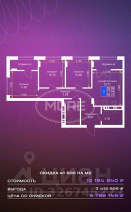 СЕМЕЙНАЯ ИПОТЕКА 3,5%. Дом комфорт-класса. Лоджия застеклённая. Автономное отопление. Лаунж-зоны для отдыха и прогулок. Рядом с домом школа, детский сад, поликлиника, продуктовый супермаркет.