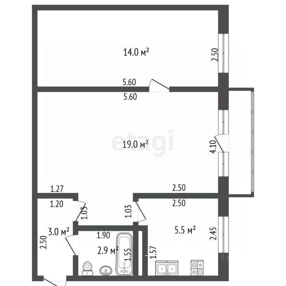 Жилая площадь: 34 м² (19 м² и 14 м²)
