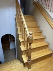 Первый и второй уровень соединены лестницей выполненной из массива ясеня.