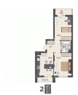 56 м²