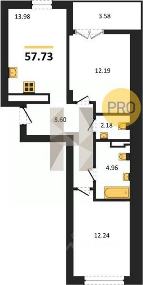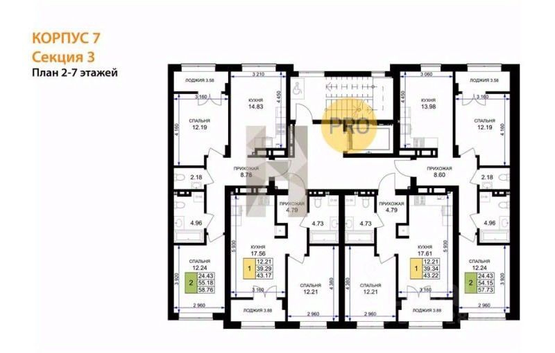Квартира: 2 к 55,94 кв.м., 4 этаж в комплексе Включи, 4 очередь, корп.7, сдача: 1кв. , этажей: 7, адрес Гурьевск г., Героя России Катериничева ул., , Застройщик: ССК. Номер в базе: J31257L26567