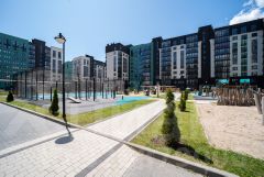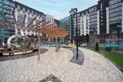Проектом предусмотрено большое количество парковочных мест и благоустройство территории с прогулочными зонами, зонами отдыха, спортивными и детскими игровыми площадками. Красивые подъезды с фото Советских фильмов и бесшумные лифты.