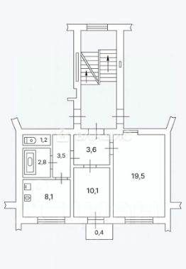 - Площадь комнат: 19, 5+10, 1