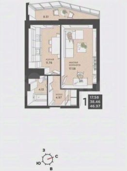 Общая площадь: 48.3м²