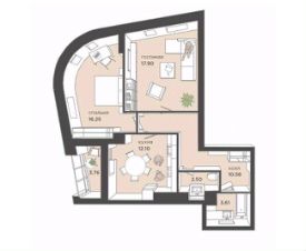 Общая площадь 64.4м²,квартира находится на 15/25 этаже в новом монолитно-кирпичном доме 2024 года постройки. Серый ключ