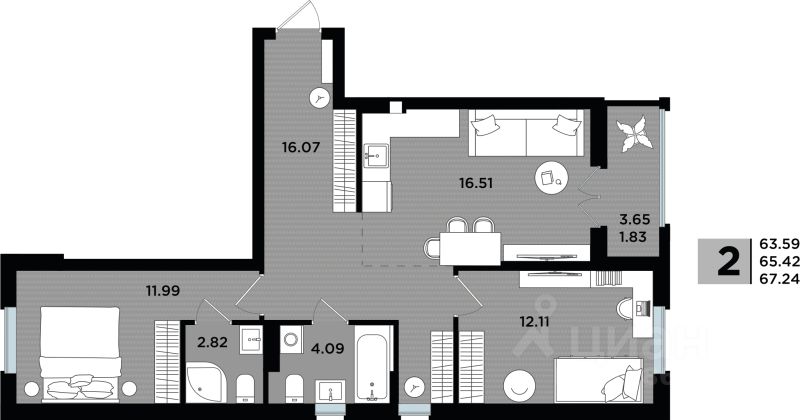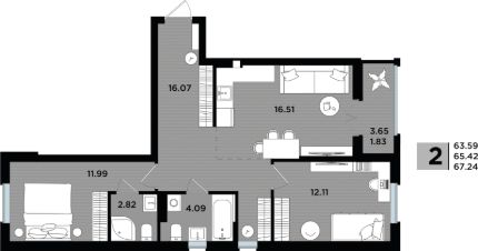 В проекте представлены 1, 2, 3 -комнатные и двухуровневые квартиры различной площади.
